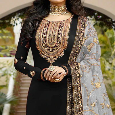 Black Embroidered Georgette Partywear Suit