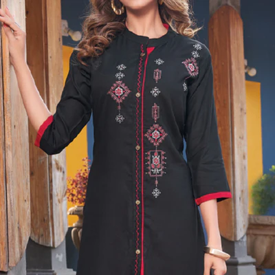 Black Embroidered Rayon Kurti