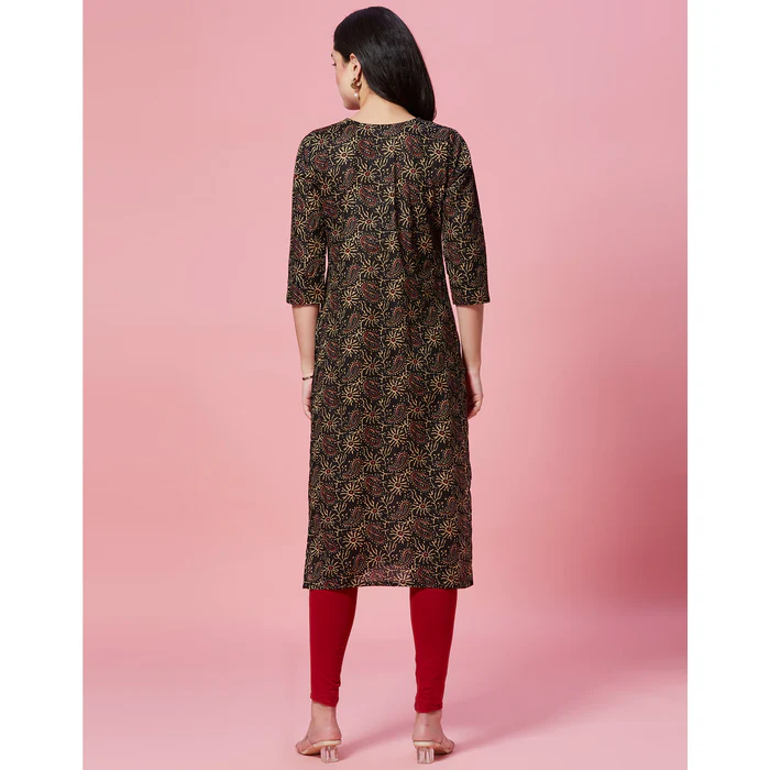 Stylish Yellow Floral Printed Kurti in Soft Pure Cotton with Embroidered Neck Detailing