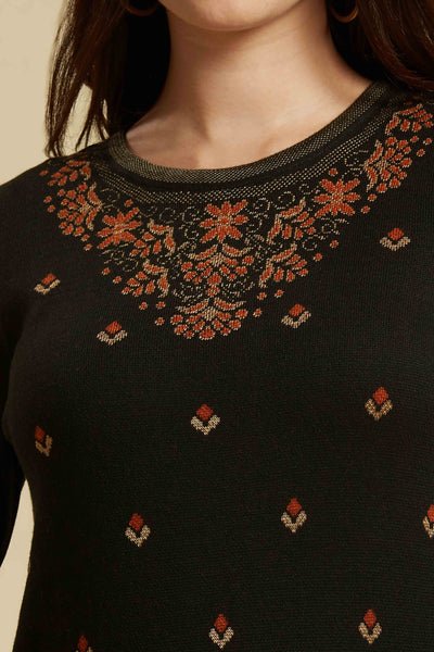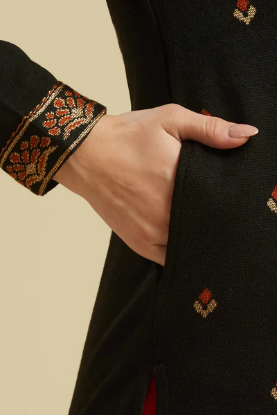 Brown Embroidered Velvet A-Line Top Bottom Set