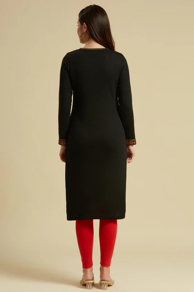 Lemon Yellow Rayon Straight Kurti with Heavy Floral Threadwork