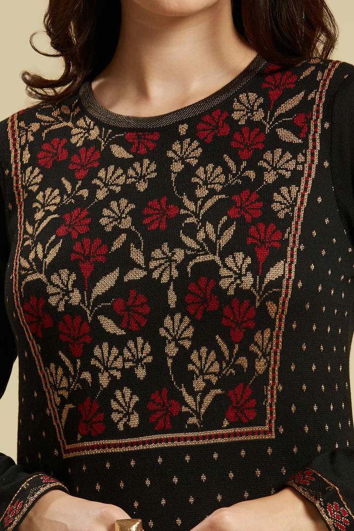 Navy Blue Floral Foil Printed Muslin Viscose Kurti