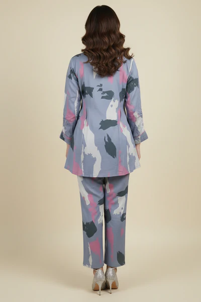 Blue Claret Artistry Viscose Shirt and Bottom Ensemble