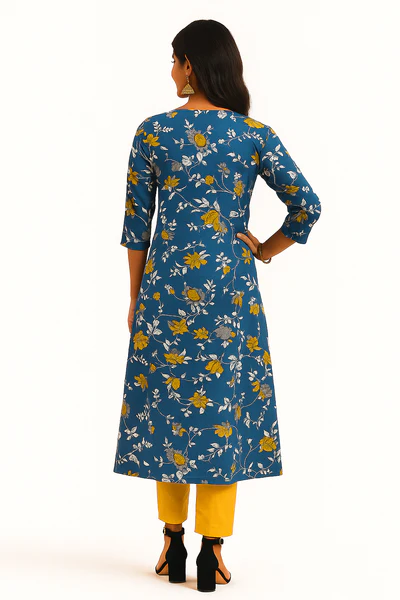 Blue Cotton Top Bottom Set Featuring Floral Prints & Handcrafted Details