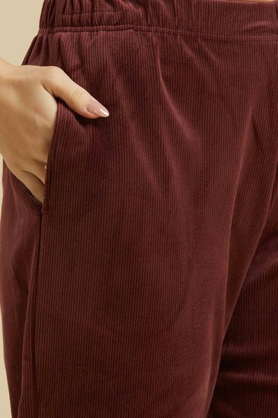 Brown Embroidered Velvet A-Line Top Bottom Set