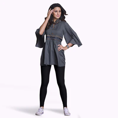 Captivating Dark Gray Colored Partywear Embroidered Rayon Western Top