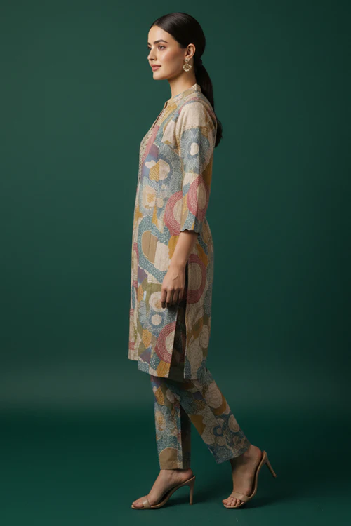 Casual Multicolor Abstract Print A-Line Kurta Set in Soft Rayon Fabric for All-Day Comfort
