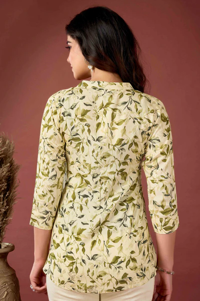 Cream & Olive Floral Printed Rayon Top