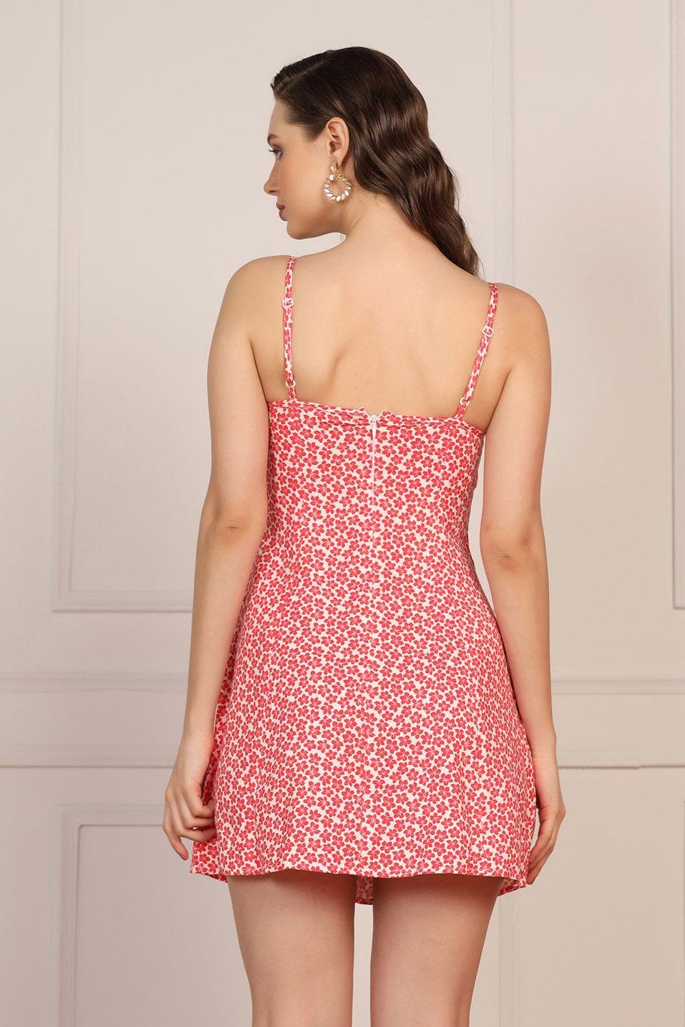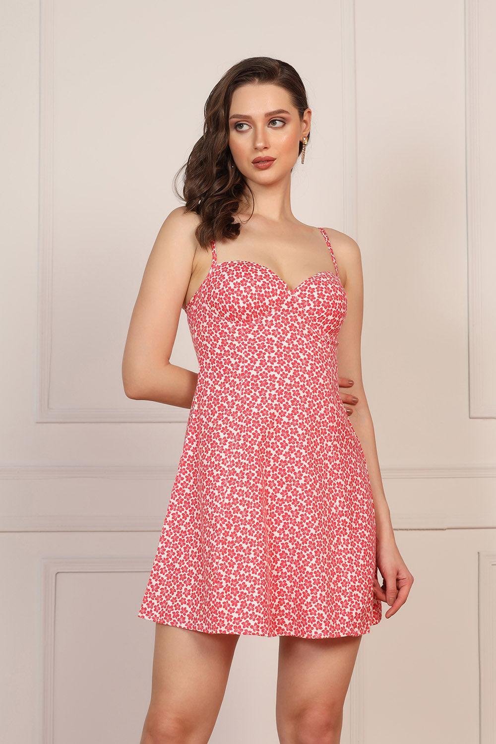 Live out all your soft girl dreams in our cupped floral dress. It features a pretty sweetheart neckline and softly shaped cups for a bust flattering cleavage with adjustable shoulder straps. This dress is designed to hug your curves before falling to floaty mini hem in an ultra feminine silhouette. It has a zip to the back.