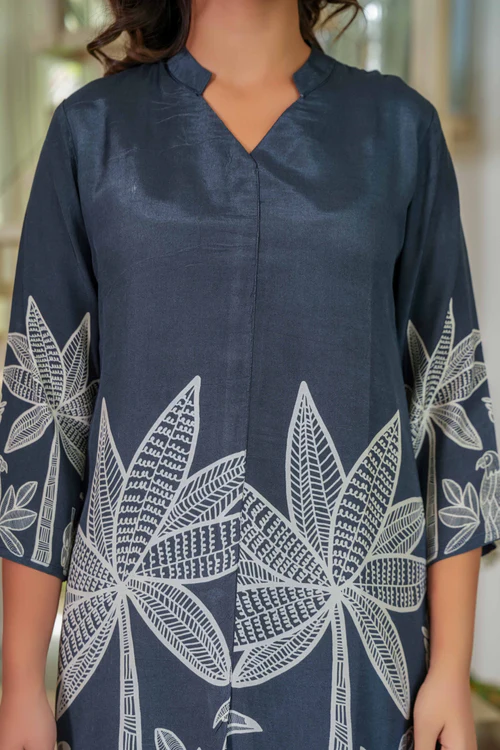 Dazzling Black Muslin Co-Ord Set With Elegant Floral Print