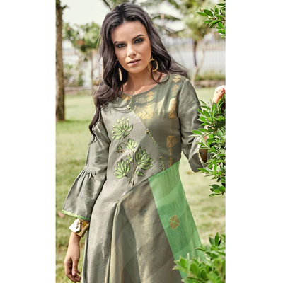 Green Floral Embroidered Art Silk Kurti