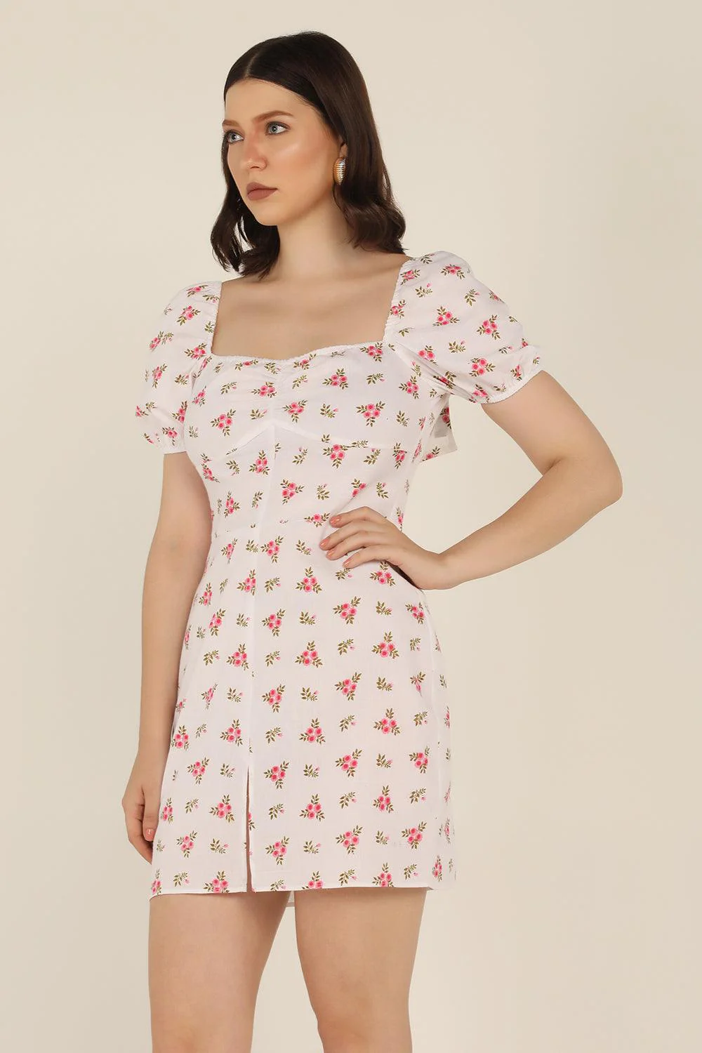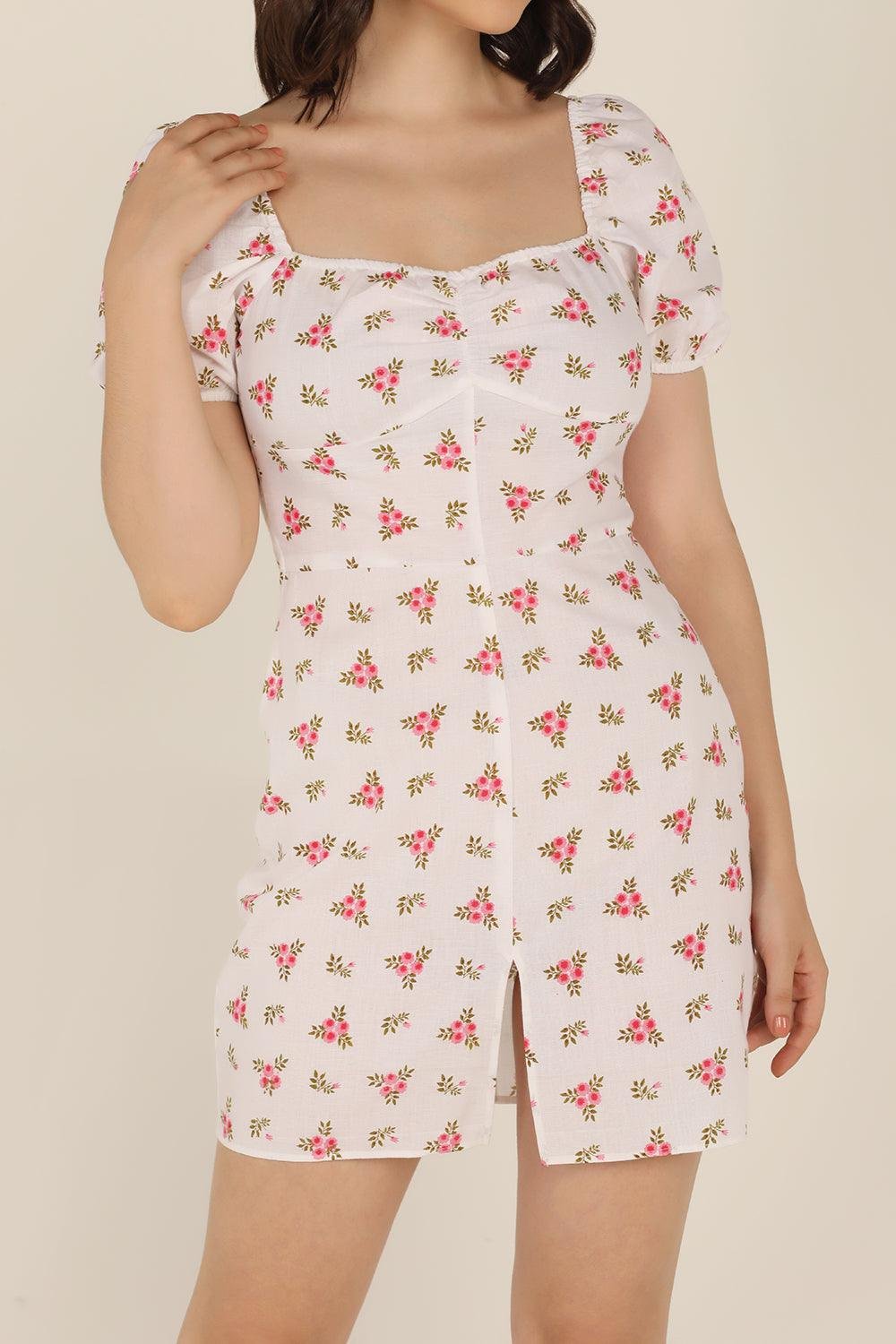 Product Details: The Ditsy floral dress features a pretty sweetheart neckline, floral pattern, puff sleeves and a small front slit. It has a zip to the back. This dress is perfect for you to live out all your soft girl dreams.