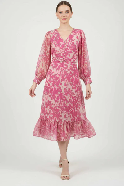Elegant Pink Chiffon Maxi Dress Adorned With Floral Prints