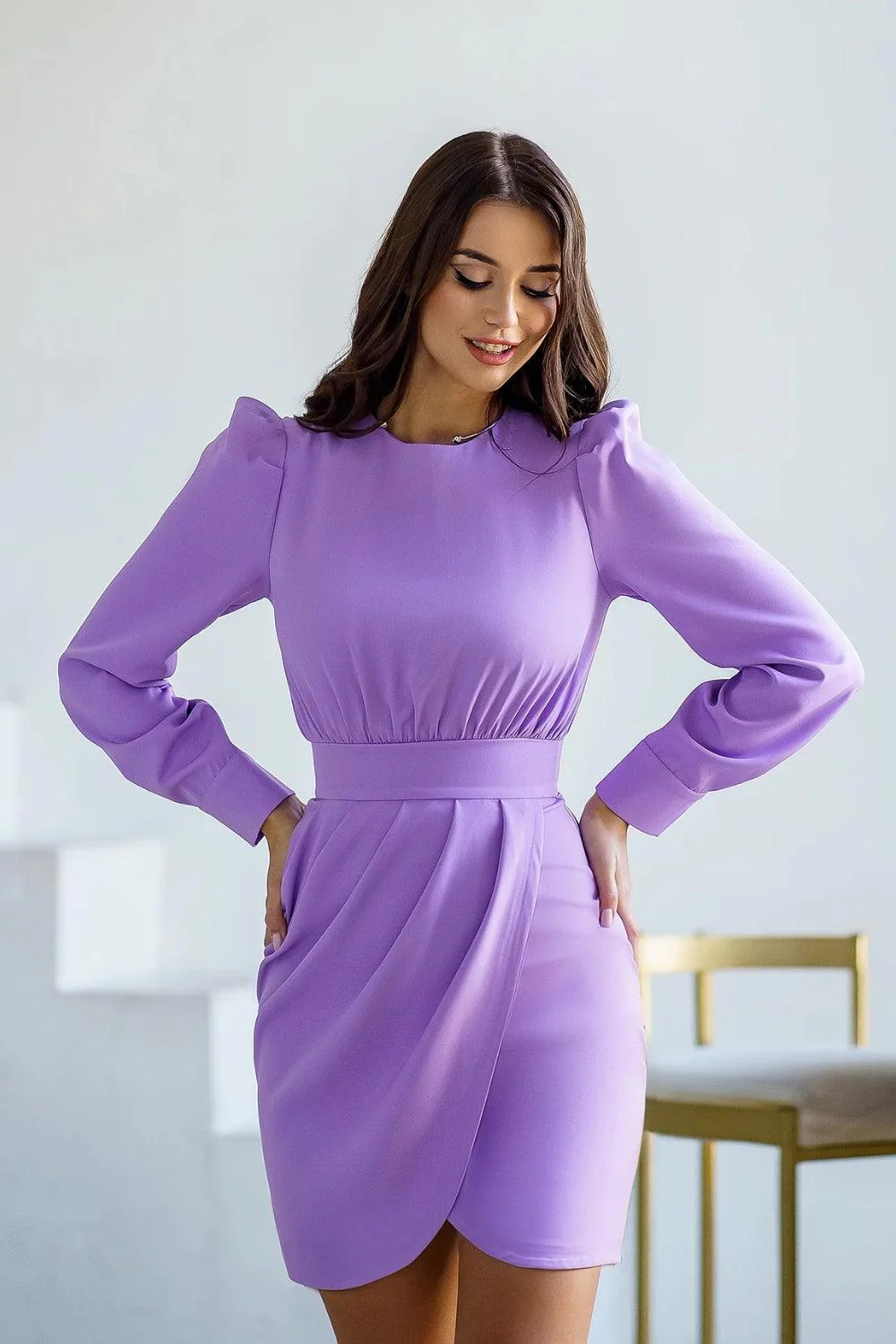 - Design Details: Long sleeves, tulip wrap hem, and concealed zip closure at the back.