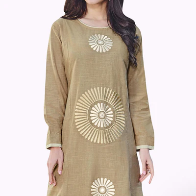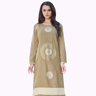Excellent Dark Beige Colored Partywear Embroidered Rayon Kurti