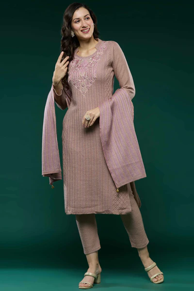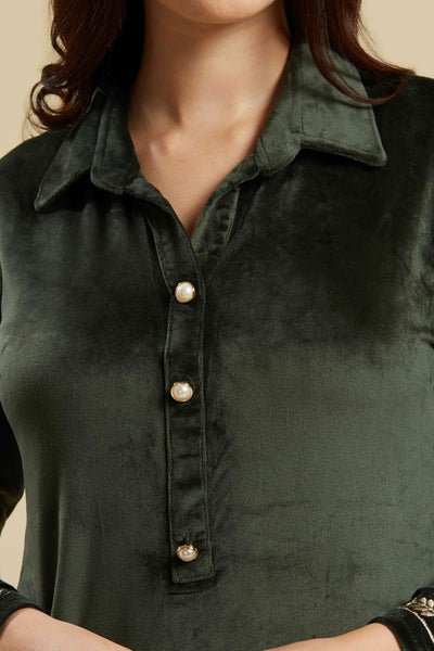 Green Embroidered Velvet Straight Top Bottom Set