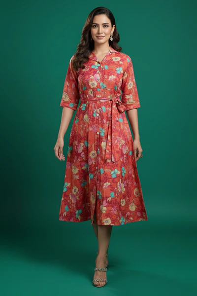 Turquoise Digital Floral Printed Chiffon Dress Original price was: ₹9,433.02.Current price is: ₹3,489.62.