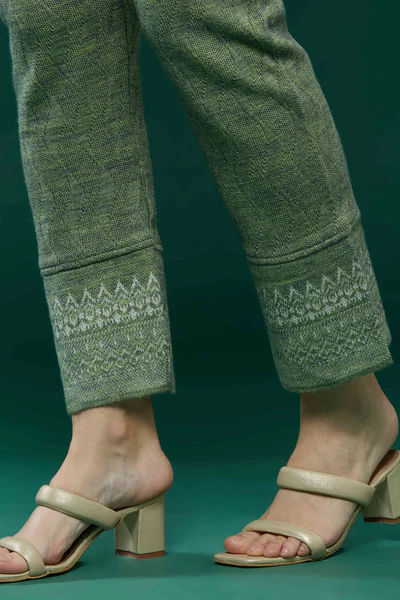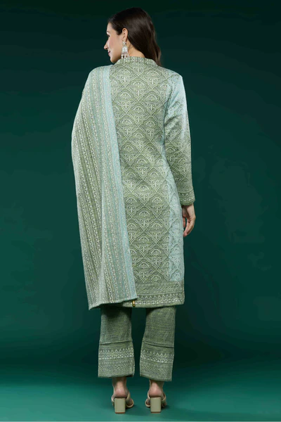 Green Woven Woolen Straight Salwar Suit