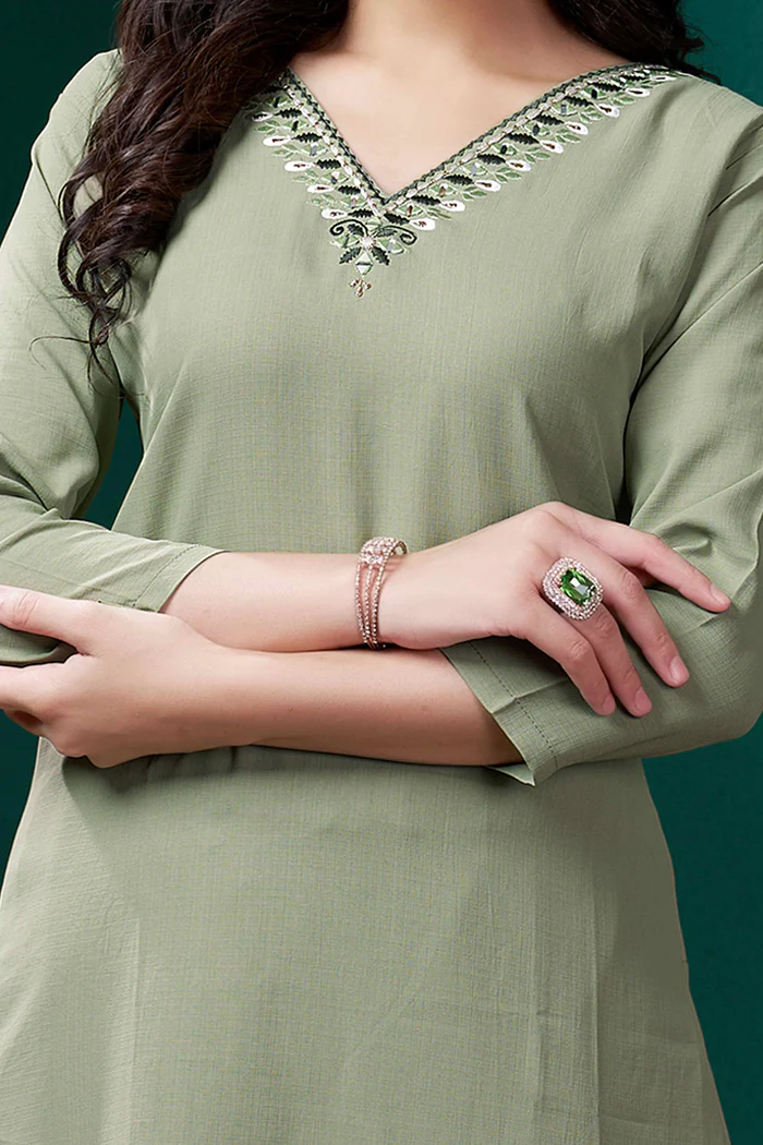 Green Yoke Embroidered Pure Cotton Straight Kurti