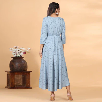 Dark Turquoise Ikkat Printed Pure Cotton A-Line Kurti