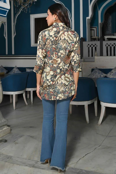 Grey Floral Printed Muslin Top