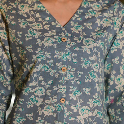 Minimalist Black Pure Cotton Straight Top with All-Over Floral Motifs