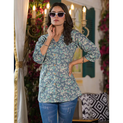 Coffee Casual Wear Floral Embroidered Rayon Top