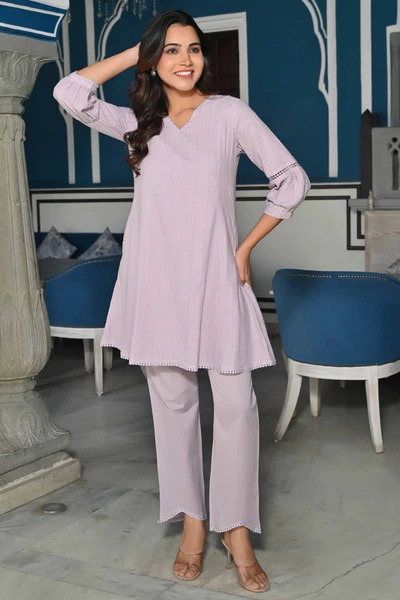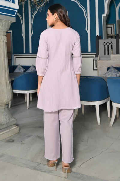 Lavender Dobby Work Pure Cotton Co-Ord Set