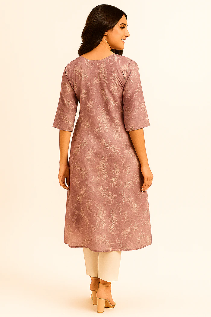 Lavender Viscose Kurti Featuring Shimmering Floral Foil Print