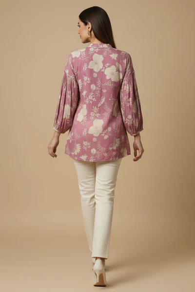 Pink Printed Rayon Top