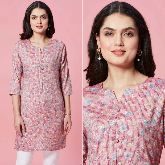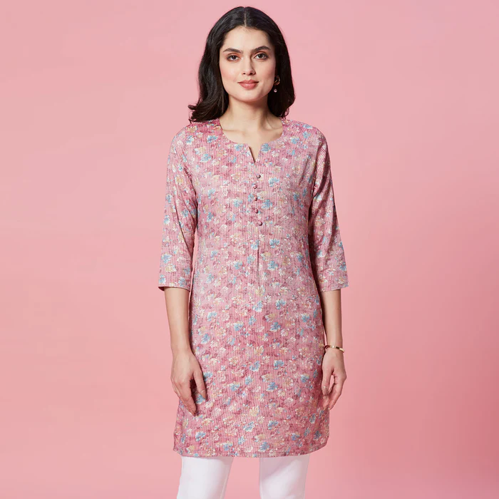 Maroon Printed Rayon Kurti in Flattering A-Line Fit