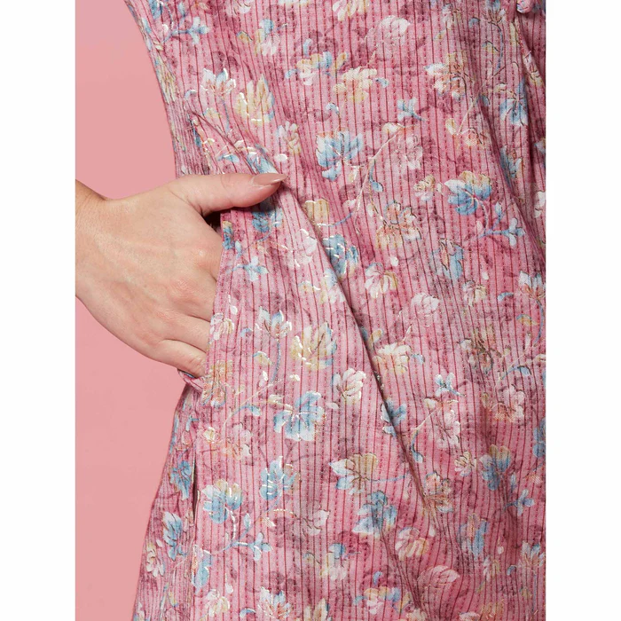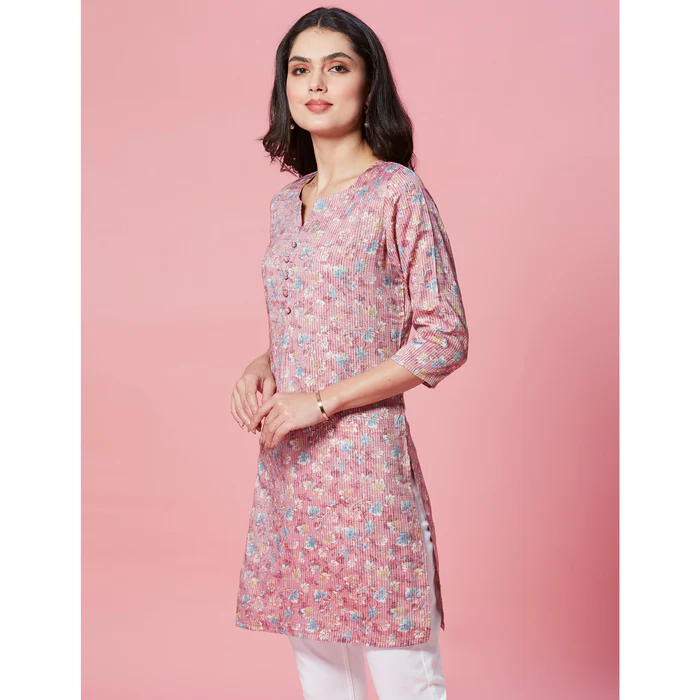 Mauve Floral Printed Pure Cotton Straight Kurti