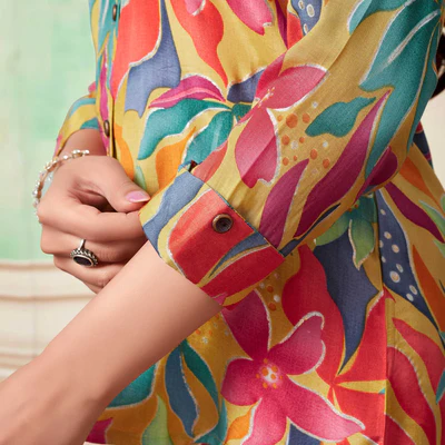 Multicolor Floral Foil Printed Muslin Co Ord Set