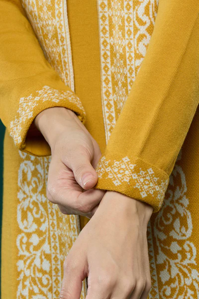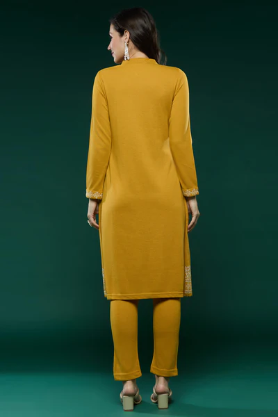 Mustard Floral Woolen Top Bottom Set