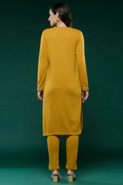 Mustard Woolen Straight Kurti