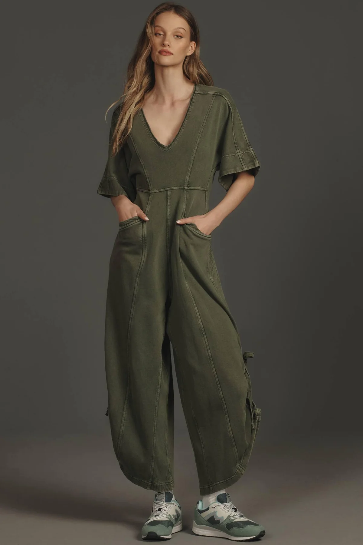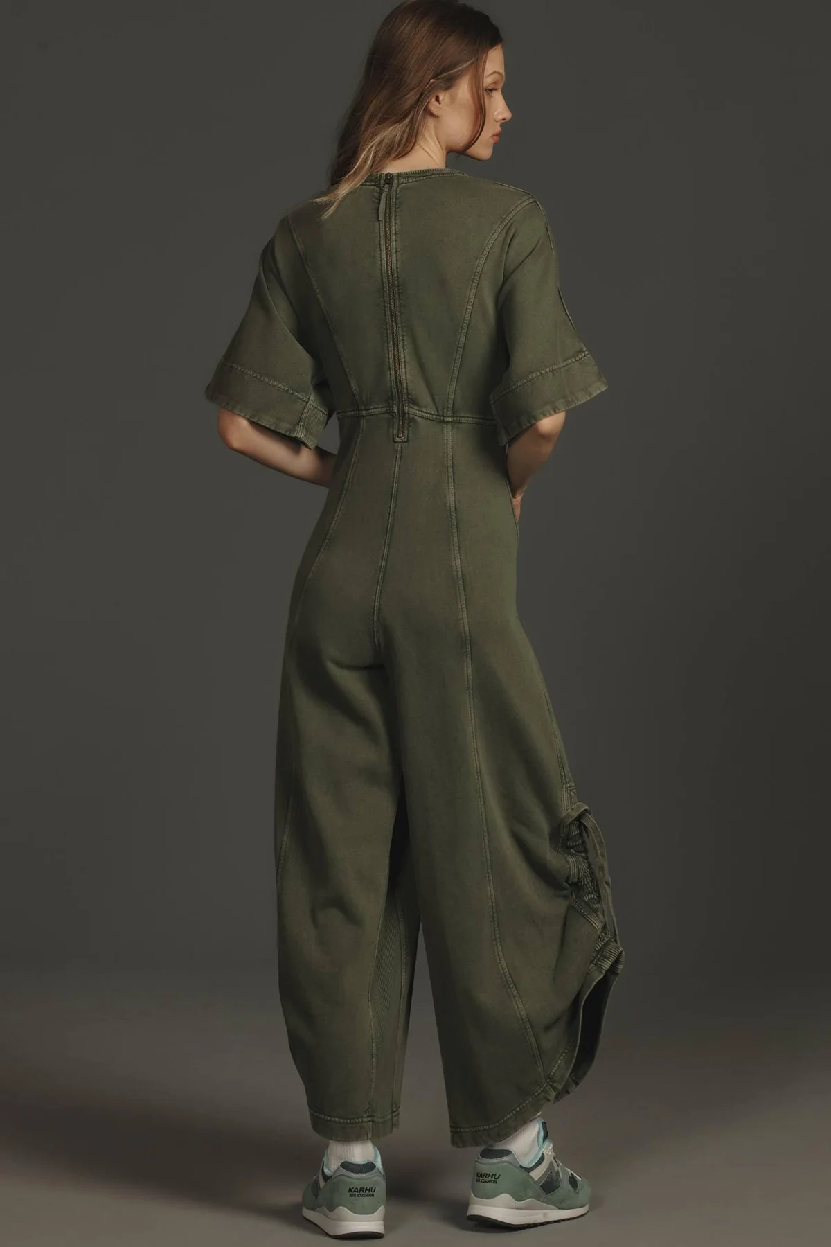 Olive Green Relaxed-Fit Jumpsuit with Utility Pockets