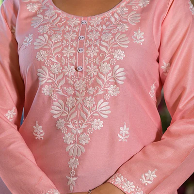 Peach Embroidered Rayon Straight Top