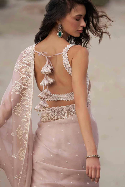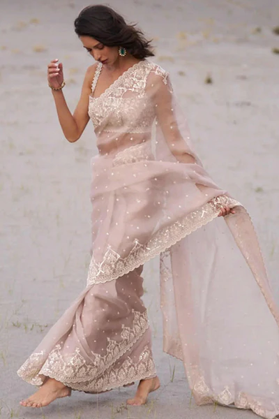 Peach Organza Saree Enhanced with Elegant Sequins Embroidery