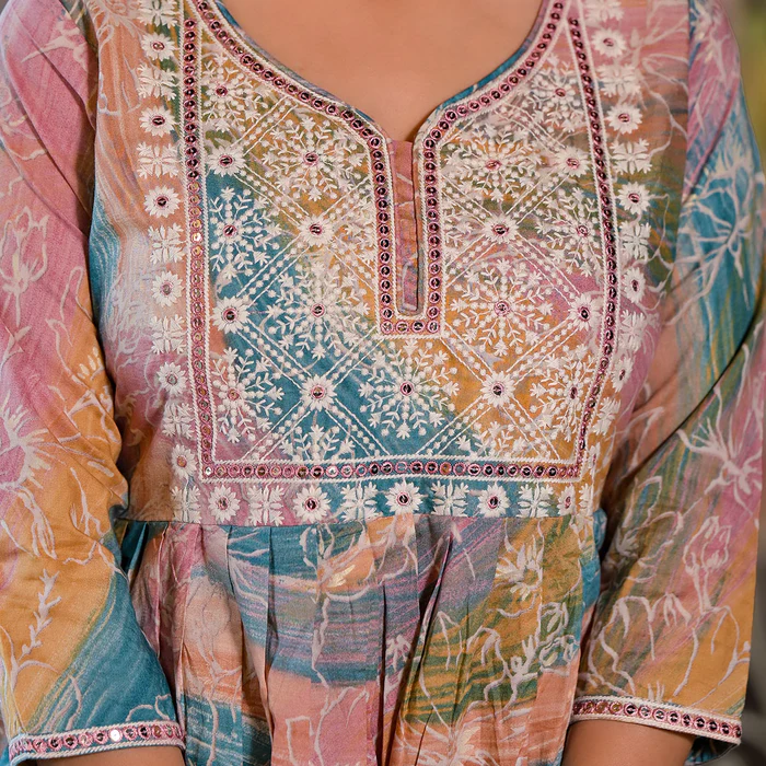 Multicolor Floral Foil Printed Muslin Top