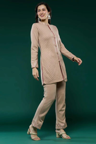 Chikoo Woven Woolen Straight Top Bottom Set Original price was: ₹9,433.02.Current price is: ₹7,546.23.