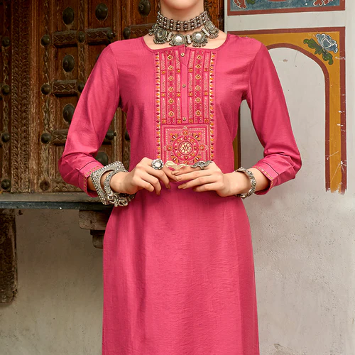 Pink Embroidered Viscose Kurti