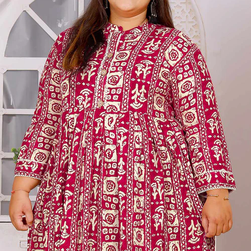 Mustard Bandhani Rayon Straight Kurti with Traditional Print