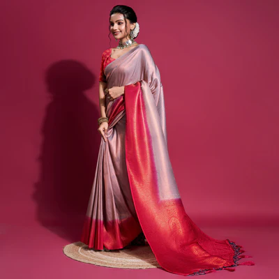 Purple & Pink Woven Kanjivaram Silk Saree With Tassels