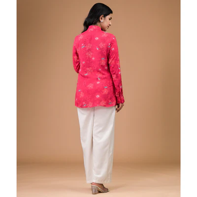 Red Foil Printed Muslin Shirt