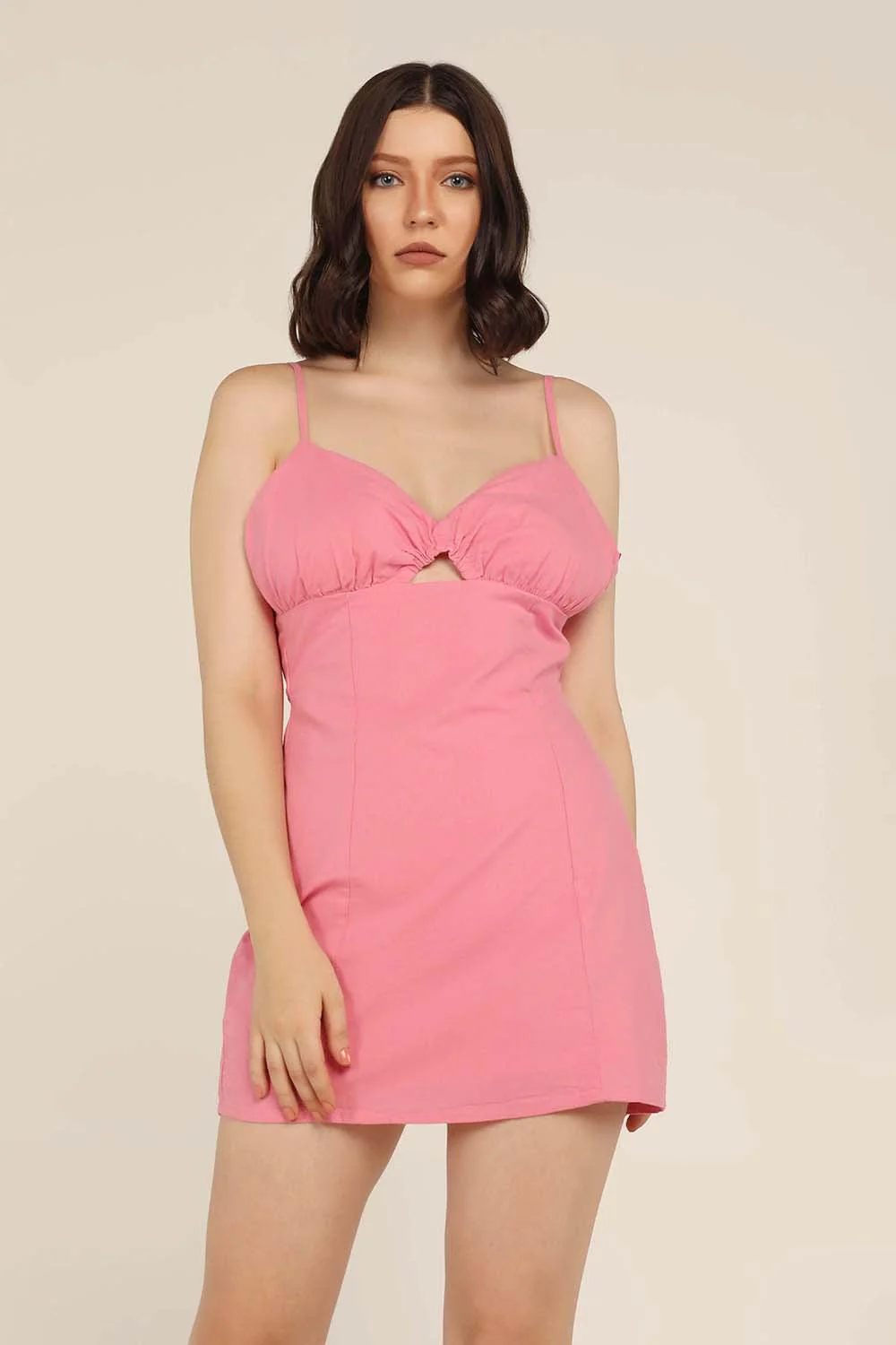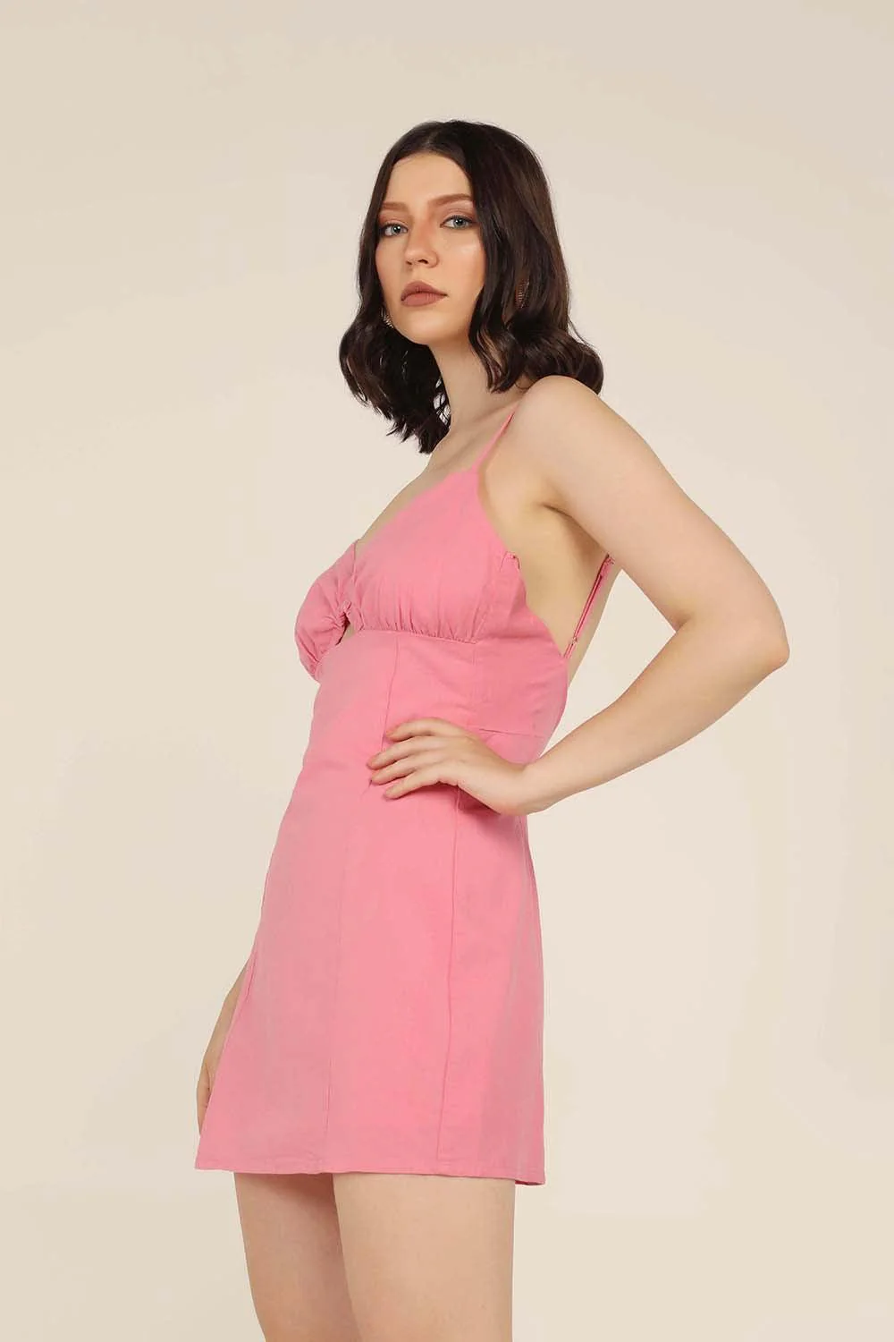Product Details: Our Rose mini dress will have turning heads all night long. This flirty mini dress has adjustable straps, a V neckline with cut out detailing. This dress is backless and has a zip at the back. Pair with blingy stilettos and statement earrings to finish the look.