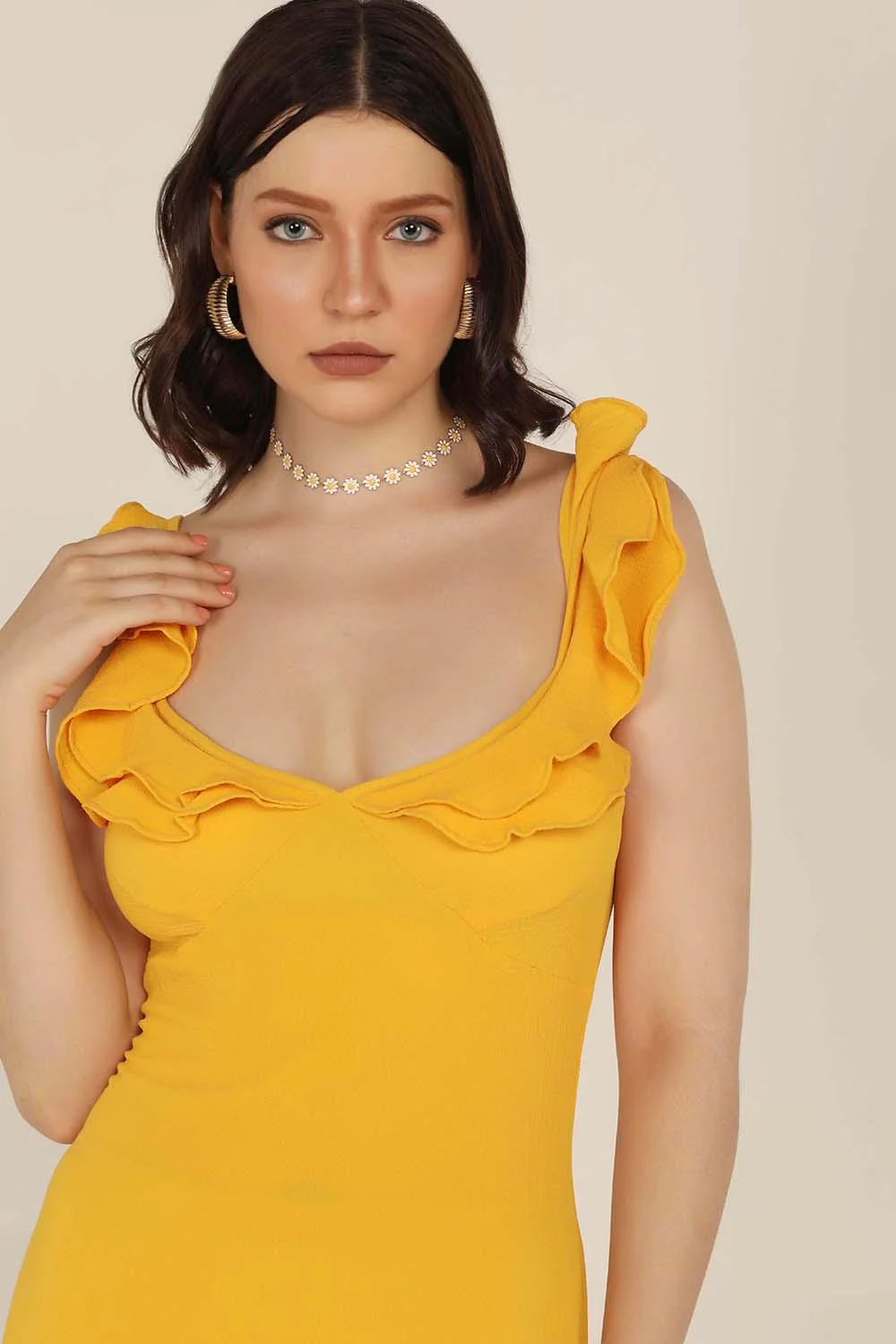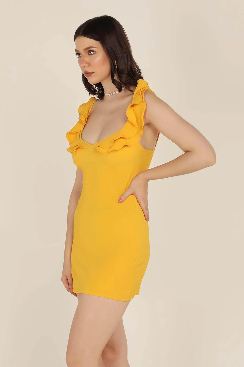 Product Details: The ruffled accents add a touch of elegance and movement to the dress, creating a whimsical and flirty vibe. Whether you’re attending a summer party, a special occasion, or simply want to elevate your everyday style, our Ruffled Mini Dress in Bright yellow is the perfect choice. Embrace your inner fashionista and turn heads with this effortlessly stylish piece.