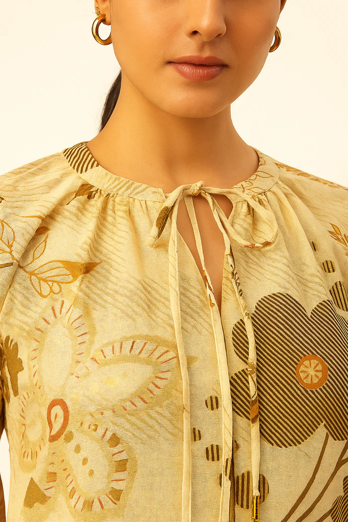 Light Yellow Trendy Floral Motif Viscose Blend Straight Kurti with Modern Appeal