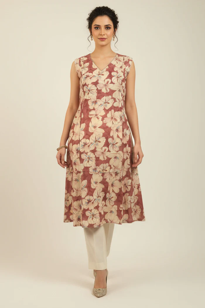 Maroon Printed Rayon Kurti in Flattering A-Line Fit
