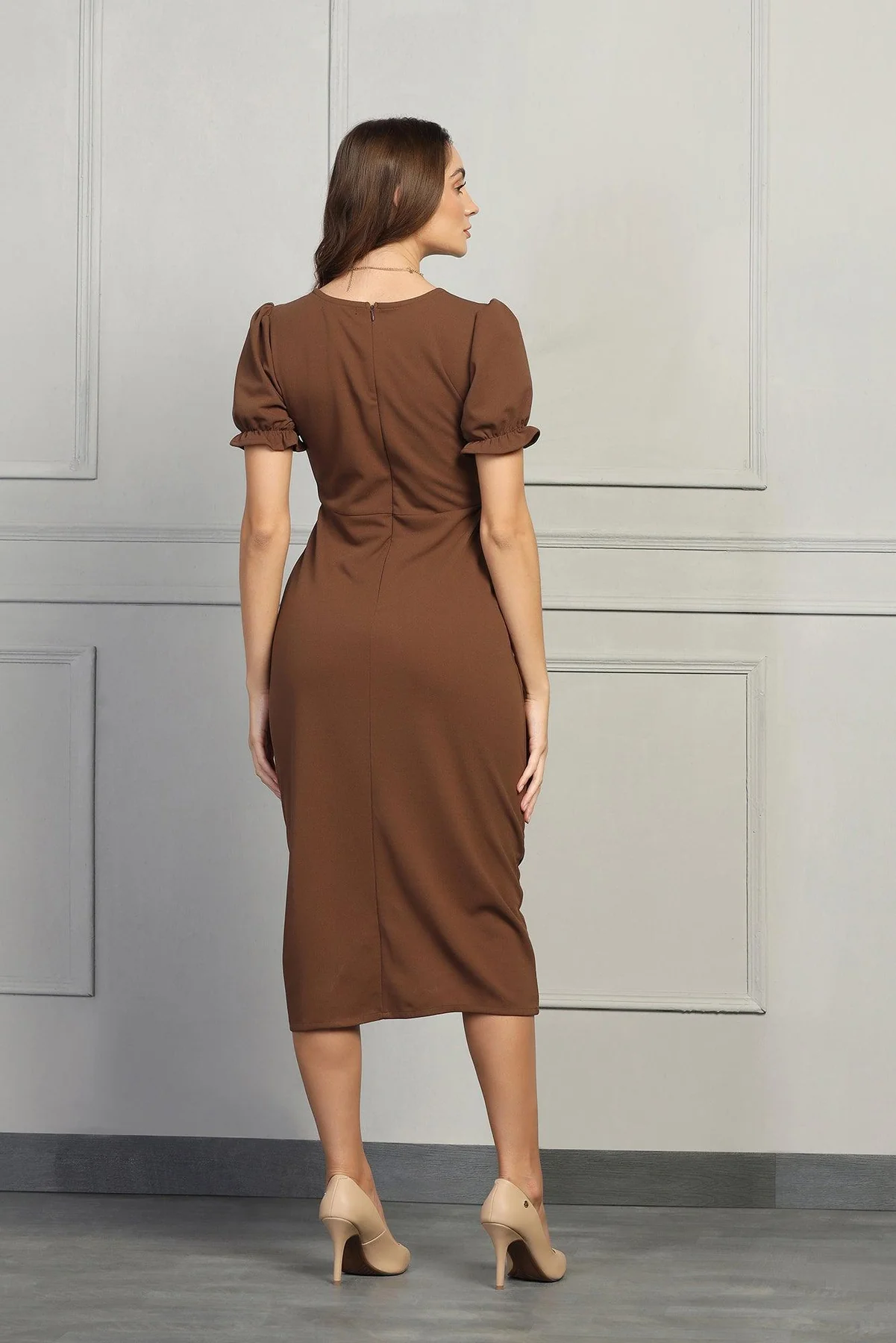 Product Details: Introducing our stunning Sweetheart Buttoned Dress in Chocolate Brown, featuring a chic front slit and a flattering sweetheart neckline. Designed with charming puff sleeves and elegant ruched detailing at the front. Complete with button detailing below the waist, it adds a touch of sophistication to your ensemble