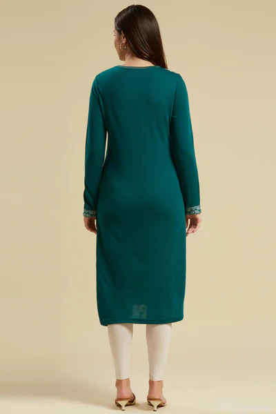 Off White & Blue Floral Printed Pure Cotton Straight Kurti
